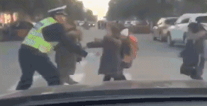 画面中的交警,其实是灌云县交警大队一中队的一名辅警,名叫侍东亮。
