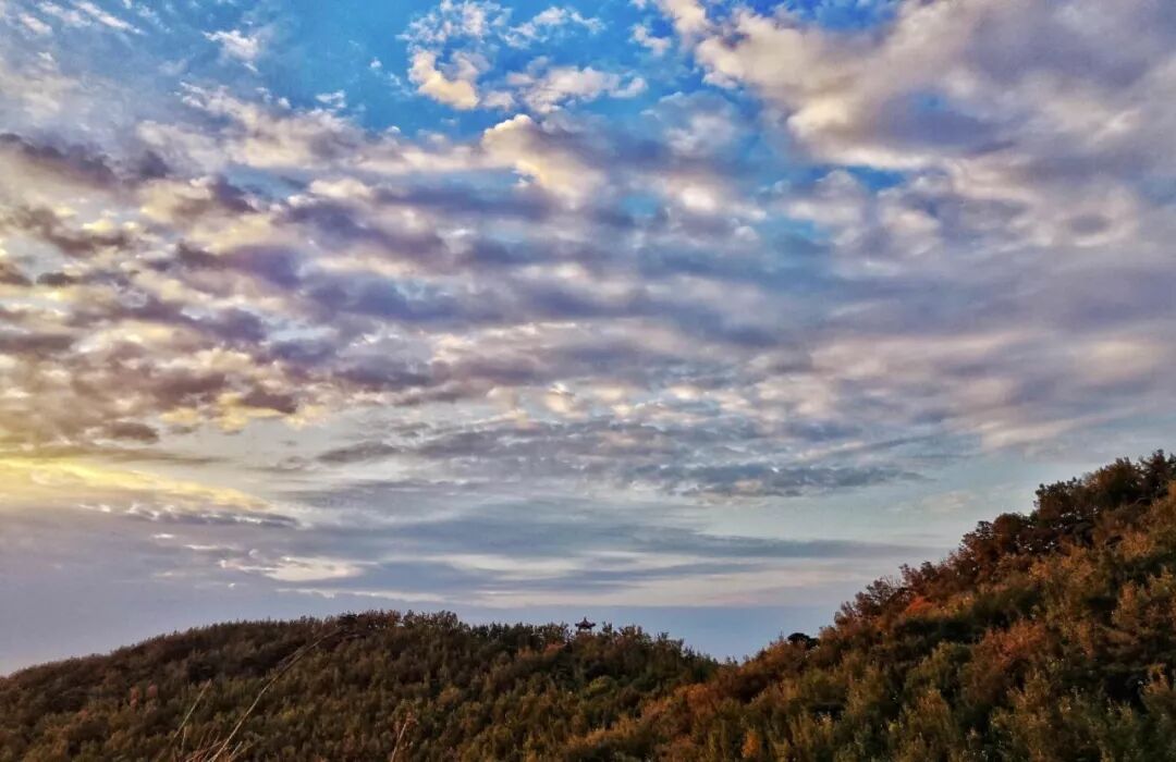 欣赏山峦、白云、枫林交织的壮丽画卷