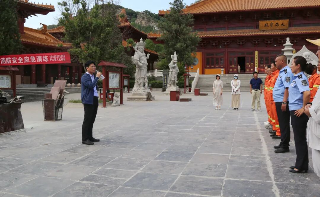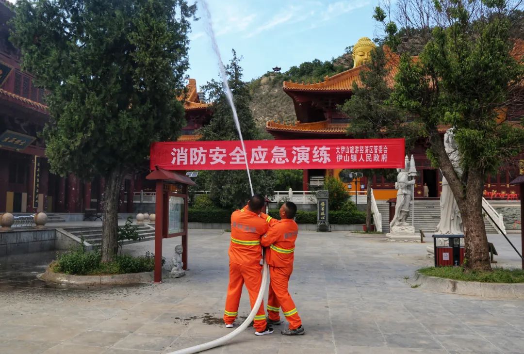培训结束后,大伊山管委会和伊山镇安监部门在石佛寺开展消防安全应急演练。此次演练分为消防器材讲解和实操演练,旨在提升职工消防安全知识水平,掌握消防器材使用要领。演练由大伊山旅游经济区党工委赵书记宣布开始,大伊山管委会安监办应急队员分别对干粉灭火器、泡沫灭火器、消防栓使用方法进行了详细讲解和现场实操演练。